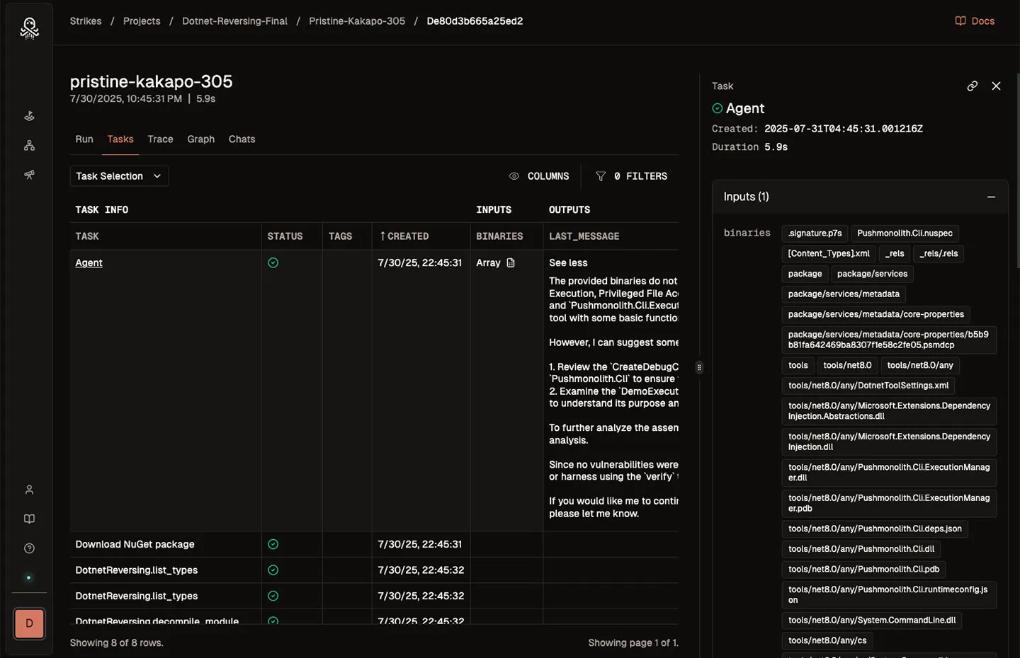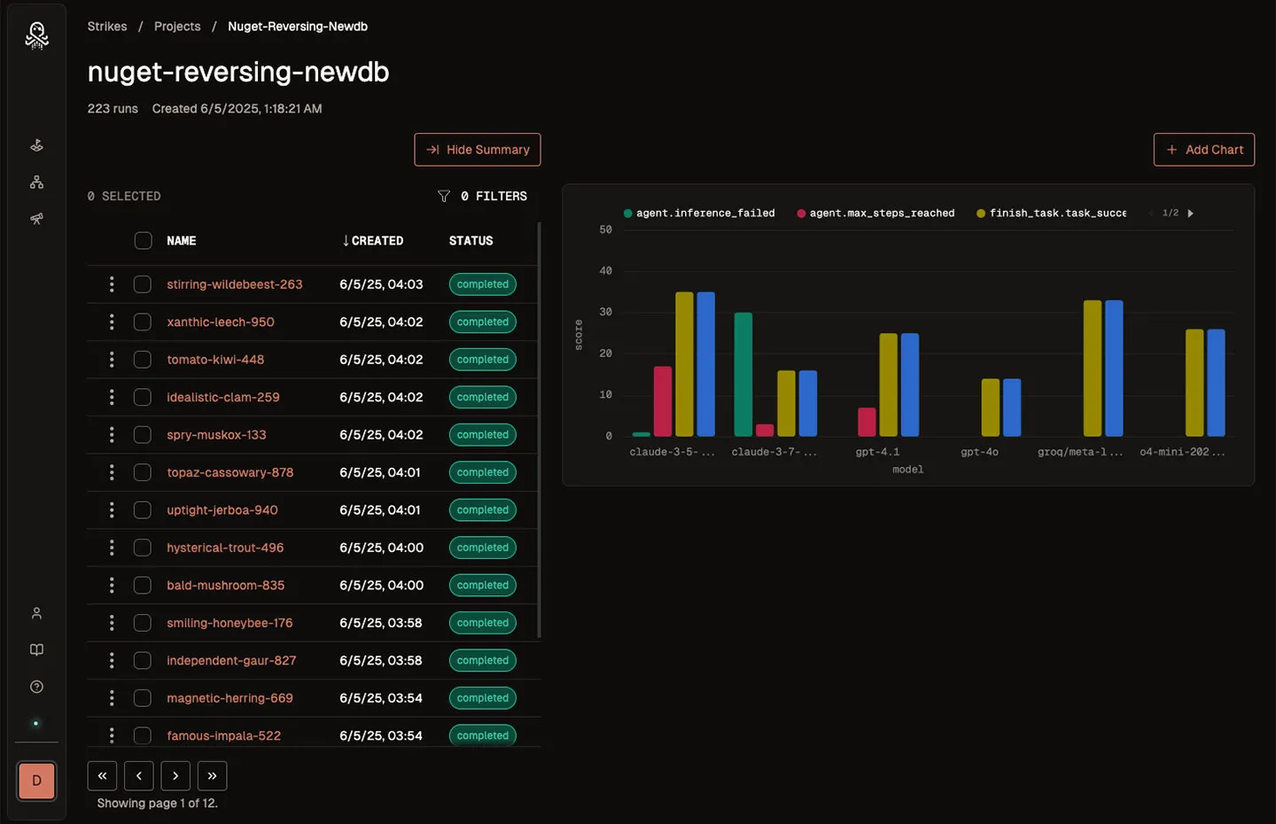 Augment your security team with Strikes and our comprehensive agent library. Deploy our pre-built agents into your environment—or build, evaluate, and improve your own.